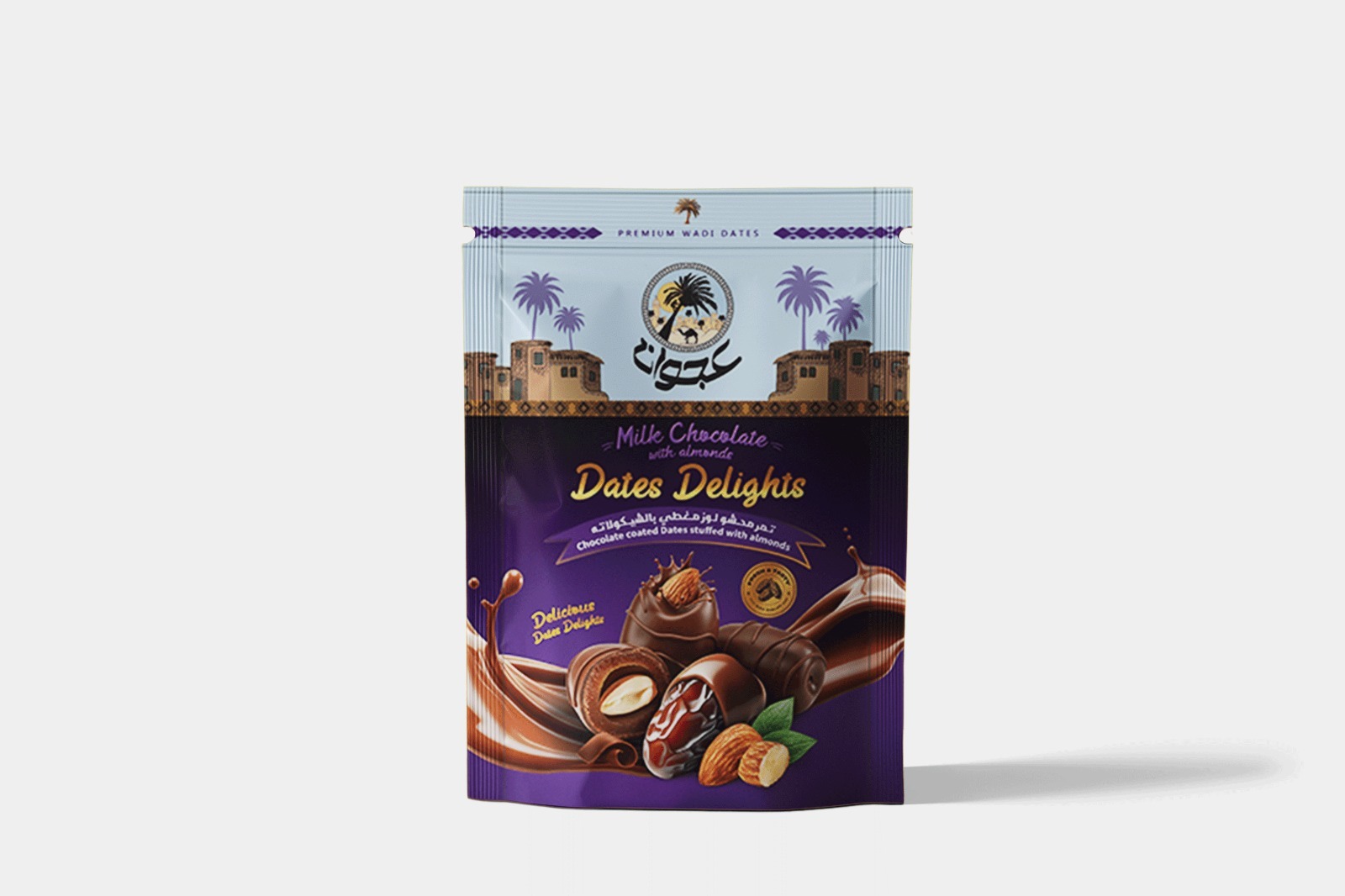 Ajwan Almonds Stuffed Dates Covered in Chocolate is a combination of high-quality natural Egyptian dates. Carefully selected fresh and ripe dates are used to prepare this unique and delicious treat. The dates are covered with a thick and delicious layer of rich Chocolate and Stuffed with freshly roasted almonds, adding a wonderful and tempting flavor to them.