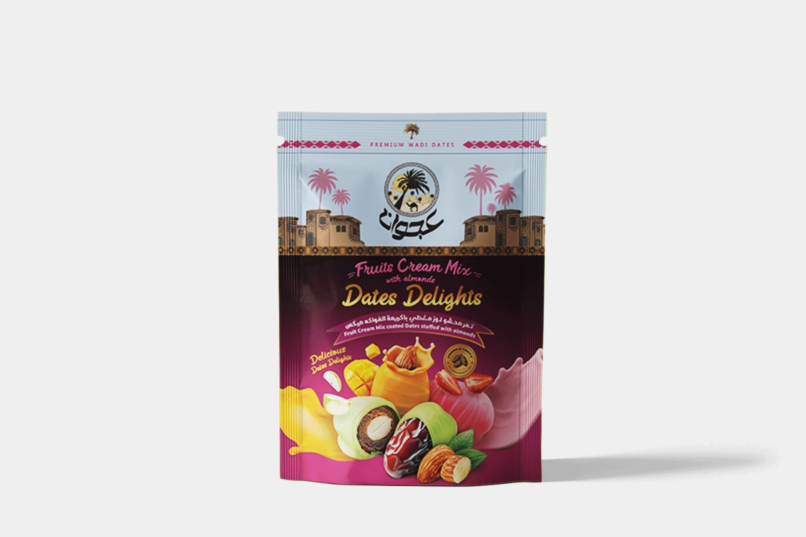 Ajwan’s chocolate-covered mixed fruit dates are made from the finest high-quality Egyptian dates. Fresh, ripe dates are carefully chosen, stuffed with assorted fruits, and coated in a mix of milk and white chocolate to deliver a rich and delightful taste experience.